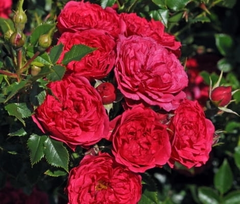 Aksamitnie karmazynowy kwiat to prawdziwa ozdoba i absolutny must-have w każdym wyjątkowym ogrodzie. Róża ta zawdzięcza swój imponujący wygląd intensywnie ciemnoróżowemu kolorowi, który stopniowo przechodzi w głęboki, aksamitny karmazyn. Ciemnozielone liście tworzą doskonały kontrast z barwą kwiatów, nadając roślinie wyjątkowej wyrazistości. To silny krzew o umiarkowanie rozłożystym pokroju, bardzo zdrowy i łatwy w uprawie. Dzięki swojej urodzie i rozmiarowi doskonale nadaje się na środek lub tył rabaty, na żywopłoty lub jako soliter w słonecznym zakątku ogrodu. Można ją również prowadzić jako niewielką różę pnącą.