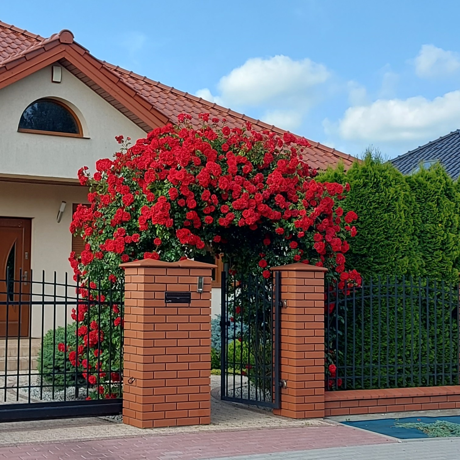 Piękna róża, kwiaty bardzo trwałe, kolor intensywny. Wspaniałe wygląda przy pergoli.